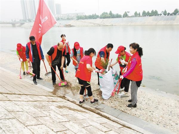 本报讯 6月13日,中心城区沙颍河南岸(中州大道桥至八一大道桥段)一片热闹景象,70多名身着红马甲的志愿者聚集在这里,参加“守护母亲河 环保志愿行”社会服务活动,以实际行动助力“创卫”,让沙颍河水清岸绿景美。