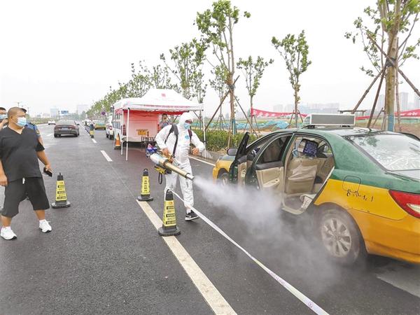鉴于北京疫情,为有效降低病毒传播扩散风险,维护公众安全,日前,川汇区交通运输局在高铁站、火车站等处对出租车进行集中消杀。同时,该局在庞大集团院内还对前来审验的出租车进行消杀,确保乘客出行安全。