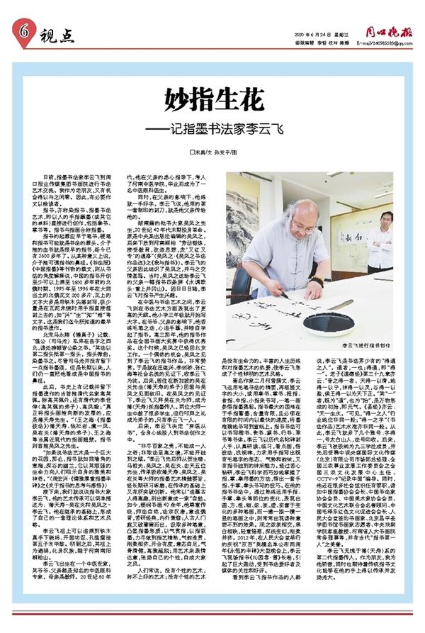 日前,指墨书法家李云飞到周口报业传媒集团书画院进行书法艺术交流。我作为老朋友,又有机会得以与之闲聊。因此,有必要作文以飨读者。