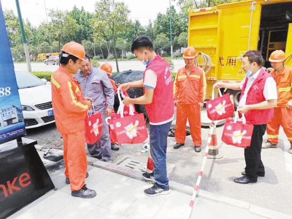 6月25日上午,周口助梦公益团联合三全食品股份有限公司开展“情满端午 粽香全城”公益活动,将300斤粽子分发给环卫工人、交警、农民工、保安、管道工人、公交车司机等。