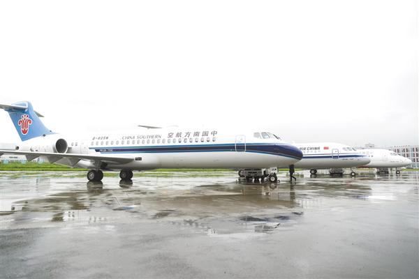 当日,三架崭新涂装的国产新支线客机ARJ21飞机在位于上海浦东的中国商用飞机有限责任公司总装基地集结,分别交付给国航、东航、南航三大航空公司,标志着ARJ21进入我国主流民航市场。新华社记者 丁汀 摄