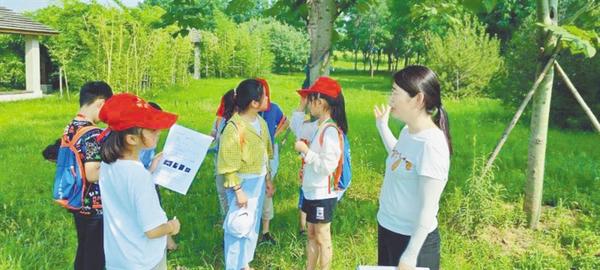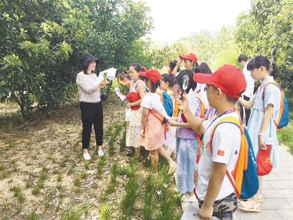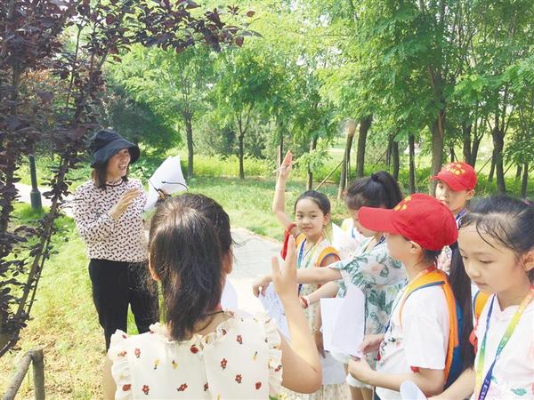 本报讯 6月27日,周口沙颍河风景区,花木葱郁,绿意盎然,好几拨头戴“周口报业小记者”红帽的孩子在老师带领下徜徉其间,近距离接触植物世界,了解常见花木的分类、形态特征和生活习性,在端午节假期上了一堂生动有趣的“研学自然课”。