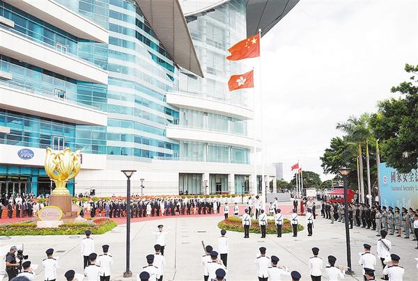 新华社香港7月1日电(记者 刘明洋 张雅诗)香港特区政府1日上午在湾仔金紫荆广场举行升旗仪式,庆祝香港回归祖国23周年。
