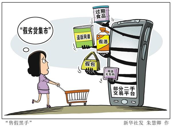 然而新华社记者调查发现,部分平台上有卖家公然出售过期食品、假酒假包、盗版网课、网游礼包码等物品,还有卖家违反平台规定和相关法规售卖防疫物资,部分工作人员甚至为发展平台“付费会员”姑息怂恿售假行为。新华社发 朱慧卿 作