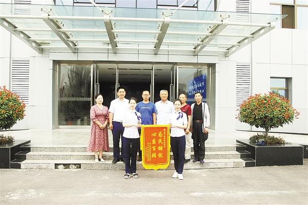 7月1日16时许,文化局家属院数名居民代表与李明生一同将锦旗送到“周口银龙”总公司(如图)。