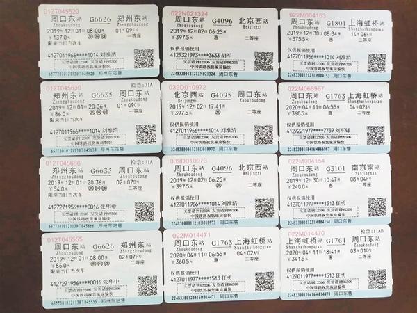据了解,郑合高铁首发前,周口市博物馆致函周口市铁路规划管理办公室,希望能够征集一批郑阜高铁周口东站各车次首发车票。在周口市铁路规划管理办公室支持下,共征集到郑阜高铁周口东站往来郑州等地的首发车票12张,分别是2019年12月1日周口东站往来郑州东站、12月2日周口东站往来北京西站、12月30日周口东站往来南京南站和上海虹桥站、2020年4月11日周口东站往来上海虹桥站等。