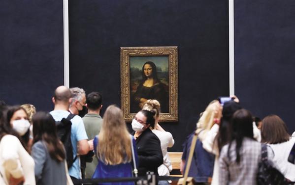 7月6日,参观者在法国巴黎卢浮宫博物馆欣赏莱昂纳多·达·芬奇的名作《蒙娜丽莎》。