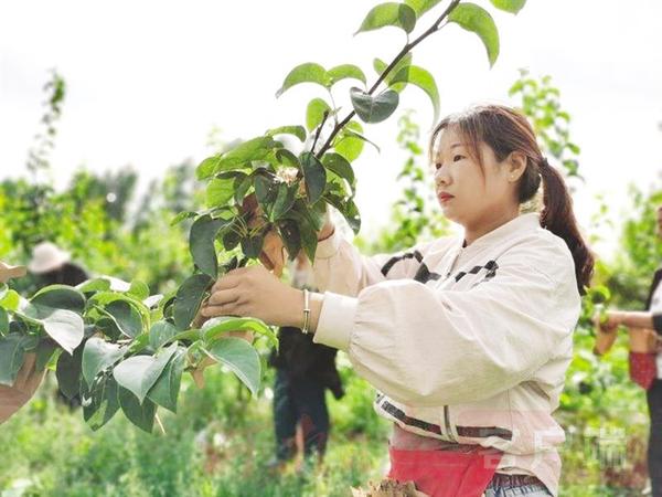这不,丰收在望的梨园里,村民们正细心地为“梨宝宝”套上纸袋,让它们长得既健壮又漂亮。“我们种的是‘多汁果王’秋月梨,又甜水分又多,今年第一次挂果能产15万公斤左右,明年预计产量超过130万公斤。”合作社负责人王国栋说,每亩地除了每年1200元保底收益外,还能享受收获后的二次分红。