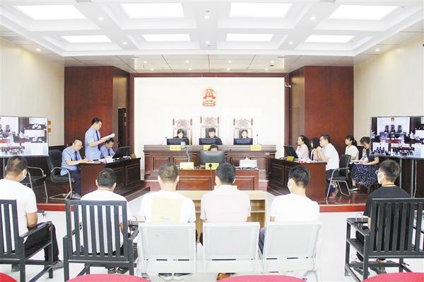 近日,扶沟县6名男子为了满足口腹之欲,相约到郊外打野鸡,被公安机关逮个正着。7月13日上午,扶沟县人民法院公开开庭审理辖区内首起非法猎捕杀害野生动物刑事附带民事公益诉讼案。图为庭审现场。