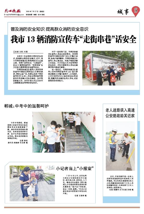 本报讯 为全面普及消防安全知识,提高群众消防安全意识,近日,周口市消防救援支队聚焦消防文化主题公园、沿街门店和社区“三类场所”, 派出13辆消防宣传车“走街串巷”全方位助力夏季消防安全宣传活动。