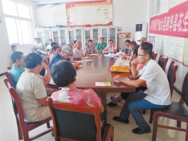 近段时间正是花生、玉米等农作物管理的关键期,为提高农民管理水平,预防病虫害发生,增加农民收入,西华县农科所及时抽调10多名科技人员组成科技服务队,深入乡村开展技术培训。图为田口乡大庞村村民参加培训。 记者张猛 通讯员 徐其杰 摄