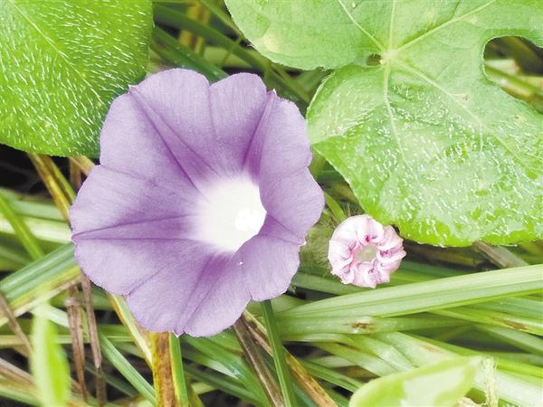 连续几个早上,都很早到单位,只为看到它的盛开。院子里一条小路的两侧,长满了蓝紫色的牵牛花,有的向树而生,有的委身草丛。