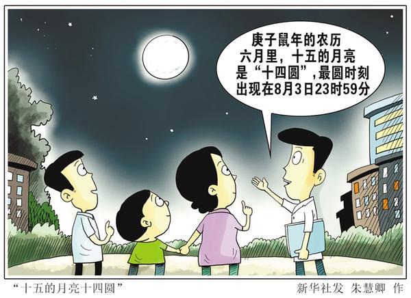 月亮何时最圆?常会听到的一种说法是“十五的月亮十六圆”,但是在庚子鼠年的农历六月里,十五的月亮却是“十四圆”,最圆时刻出现在8月3日23时59分。天文专家表示,“十五的月亮十四圆”这种现象比较罕见。21世纪这100年中,这种情况仅会出现6次。新华社发 朱慧卿 作