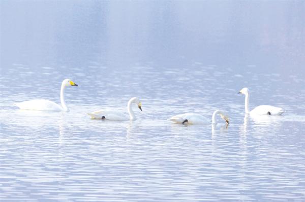清澄的湖水,草木丰茂的湖中岛,引得白天鹅、白鹭等数十种鸟类“光顾”。如今又增加了“碧湖旭日”“秋岛拾金”等景观,已然成为当地旅游休闲的“香饽饽”。