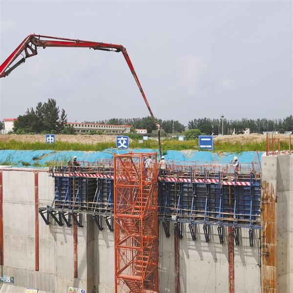 本报讯 8月11日14时58分,随着14#左闸墙最后一层浇筑完成,沙颍河航道升级改造项目郑埠口复线船闸工程主体结构顺利完工(如图),标志着郑埠口复线船闸全面进入安装施工阶段。