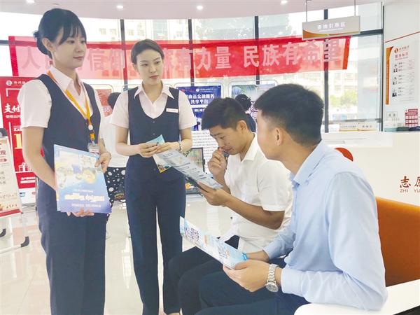 近日,郑州银行周口分行秉承以客户为中心的理念,以科技活动周宣传为契机,借助金融科技的力量,不断拓展营销形式,积极构建丰富的线上渠道,推进线下业务线上化,打造线上渠道和线下渠道协同发力的服务新模式,为客户随时随地提供便捷高效的金融服务,提升了金融服务的便捷性与可得性。图为8月28日该行工作人员向市民介绍信用卡业务。