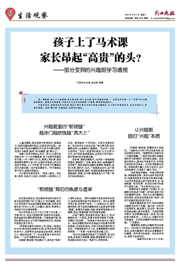 多位受访者坦言,身边确实存在部分家长为孩子挑选所谓的“冷门又高大上”的兴趣班。其中不乏有的孩子对此类兴趣班真感兴趣,但更多是家长的“升学小心思”以及攀比、虚荣、焦虑等心态驱动下的非理性消费。