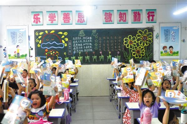 9月7日上午,周口市文昌小学一年级新生满怀憧憬走进校园,他们双手从校长、老师手中接过新教材,并行感恩礼,开启了小学生活。