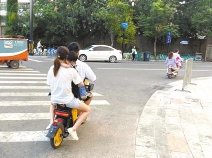 镜头一:9月4日12时许,在中心城区七一路与八一大道交叉口附近,短短10分钟时间,有十多位家长骑着共享电动踏板车载着孩子经过。由于载重过大,共享电动踏板车在刹车或转弯时摇摇晃晃,很是危险。