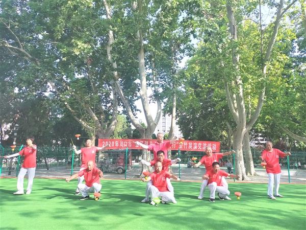 本报讯 9月19日,我市40多名空竹爱好者聚集在周口人民公园,参加由市空竹协会举办的2020年周口市“全民健身与‘创文’同行”空竹展演交流活动。