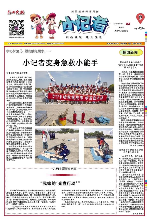 本报讯 伴随着雄壮的国歌声,9月9日上午,周口市纺织路小学举行开学典礼暨“厉行节俭、反对浪费”主题教育升旗仪式。