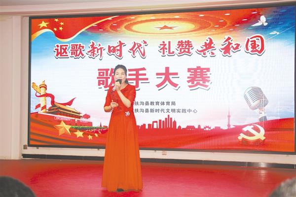 本报讯 “我和我的祖国,一刻也不能分割。无论我走到哪里,都流出一首赞歌……”9月24日上午,嘹亮的歌声从扶沟县新时代文明实践中心传出,拉开了扶沟县教育系统“讴歌新时代 礼赞共和国”歌手大赛的帷幕。