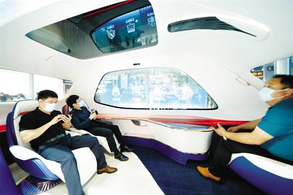 9月26日,观众在一汽红旗展台体验明年7月即将量产的红旗智能2.0小巴。