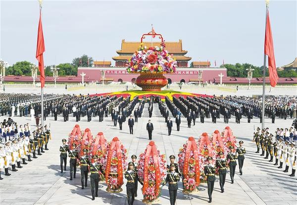 新华社北京9月30日电 缅怀革命先烈,弘扬英雄精神。烈士纪念日向人民英雄敬献花篮仪式30日上午在北京天安门广场隆重举行。党和国家领导人习近平、李克强、栗战书、汪洋、王沪宁、赵乐际、韩正、王岐山等,同各界代表一起出席仪式。