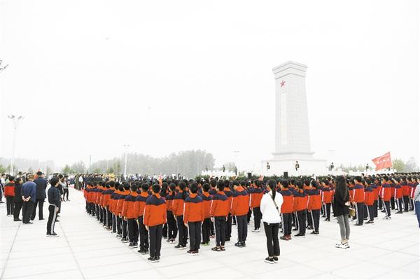 在庄严低沉的《献花曲》中,中共周口市委、周口市人大、周口市政府、周口市政协、周口军分区主要领导,以及各界群众代表向烈士纪念碑敬献花篮。花篮安放后,刘继标缓步走到花篮前,庄重整理花篮缎带,表达对烈士的哀思和敬意。