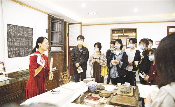 当前,在我市开展文明城市创建之际,周口师范学院设计学院设计团队也加入周口文明城市的建设中,他们联合我市民间文艺家协会,深入研究民俗文化,将周口民俗文化融入到设计中,为扮靓和提升周口城市品位奉献智慧。图为周口师范学院设计学院学生在周口华威民俗文化博物苑了解古建文化。记者 梁照曾 摄
