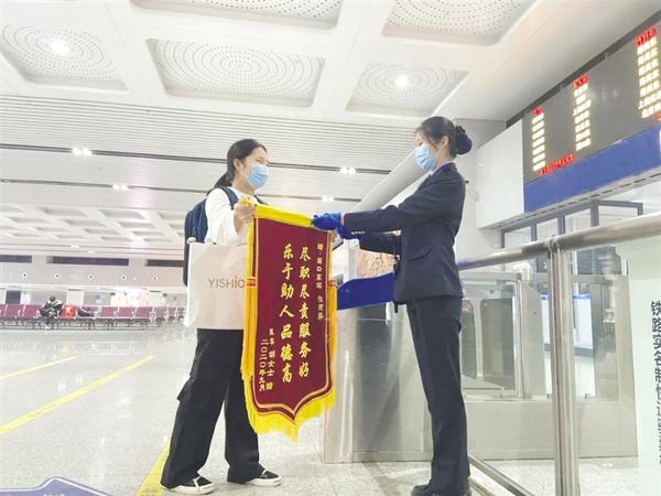 10月12日,胡女士特意从南京返回,再次来到周口东站,送来了一面锦旗。“是你们专业的服务让我没有耽误行程,没有给公司造成损失。”胡女士感激地说。