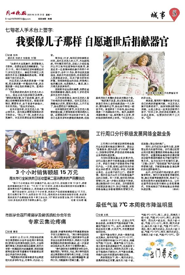 “骨代谢防治方面需要多学科合作,重在预防。”李军说,为此,周口骨科医院成立骨质疏松疼痛专病工作室,工作室将积极倡导预防为主,做好健康教育、宣传工作,为健康周口贡献力量。③7