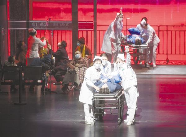 歌剧《天使日记》聚焦抗疫最前线的普通护士、医生和他们的亲人,塑造了以“兰之念”“方医生”“黄鹤”等为代表的曾为湖北抗疫拼搏奉献的医护人员形象,讴歌了堪当重任的“90后”“00后”医护群体,展示白衣天使向死而生、逆行出征的感人事迹。新华社记者 肖艺九 摄