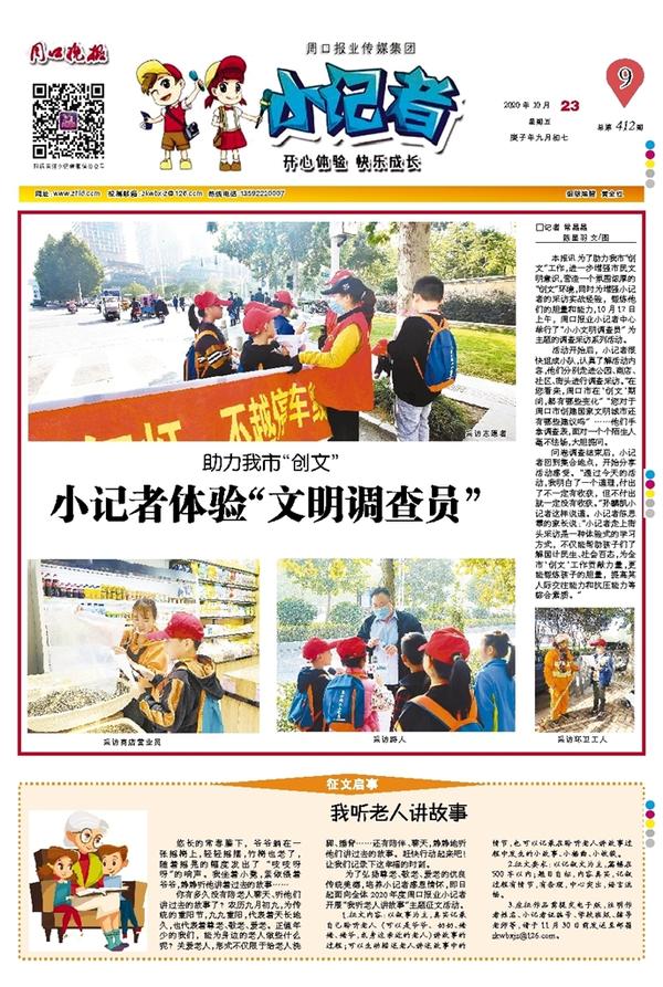 为了弘扬尊老、敬老、爱老的优良传统美德,培养小记者感恩情怀,即日起面向全体2020年度周口报业小记者开展“我听老人讲故事”主题征文活动。