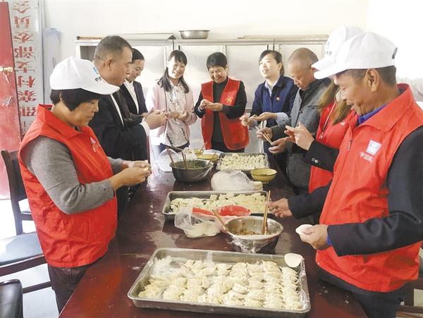 10月23日,在重阳节来临之际,20多名青年志愿者来到川汇区城北办事处邵寨村敬老院,和老人们一起包饺子,给生活在这里的老人送去温暖和祝福。 见习记者 吕冰汝 摄
