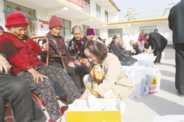 10月23日,在一年一度的重阳节到来之际,市人大代表薛华杰、杨辉等组团来到太康县城郊乡王东月居村联养点,给这里的特困老人每人送去一双爱心鞋,让老人感受到了“有儿有女”的快乐。记者 马治卫 摄