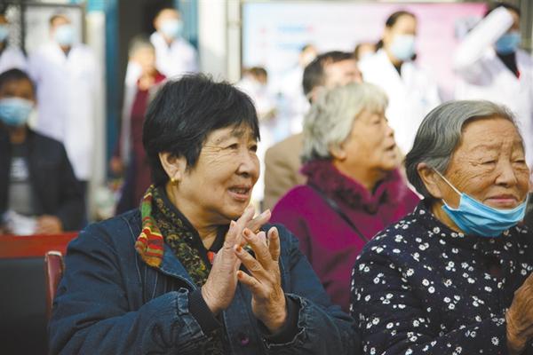 10月23日上午,川汇区陈州老年医院内洋溢着节日的喜庆气氛,医院里的老人们和医护人员欢聚一堂欢度重阳佳节。在活动现场,来自颍河豫剧团的演员为大家演唱了豫剧选段《朝阳沟》《李豁子》等脍炙人口的曲目。演员们精彩、诙谐的演出博得了现场老人的笑声和掌声。①15记者 孙安平 摄