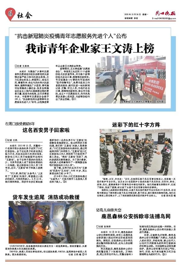 本报讯 为褒扬广大青年志愿者和志愿者组织在抗击新冠肺炎疫情这场严峻斗争中的突出表现,大力弘扬生命至上、举国同心、舍生忘死、尊重科学、命运与共的伟大抗疫精神,凝聚和激发广大团员、青年建功全面建成小康社会、投身全面建设社会主义现代化国家新征程的青春力量,经党中央批准,近日共青团中央、中国青年志愿者协会授予295人“抗击新冠肺炎疫情青年志愿服务先进个人”称号,众恒集团青年企业家王文涛获此殊荣。