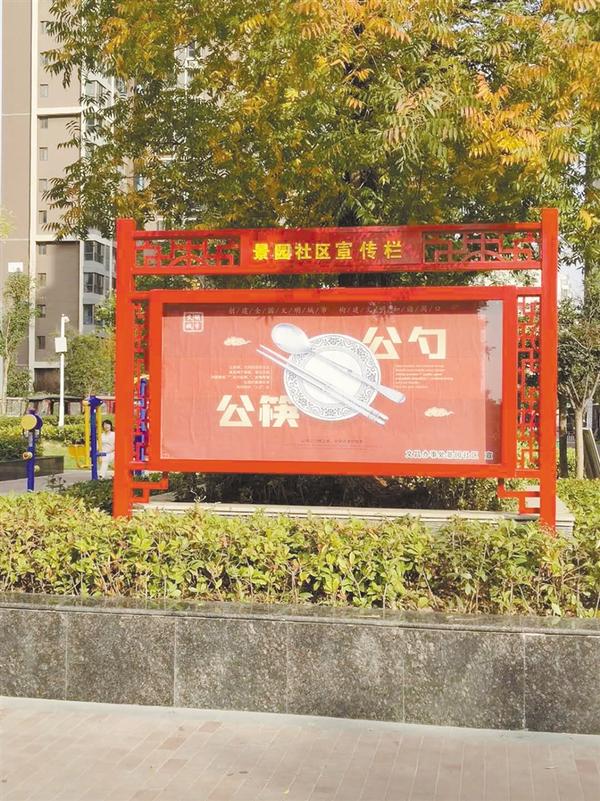 随着周口中心城区创建全国文明城市提名城市工作的不断深入,文明观念逐渐深入人心,一些社区宣传栏、公告栏上的“野广告”不见了,取而代之的是各种“创文”公益广告,社会主义核心价值观、周口市民文明公约等宣传内容随处可见。图为景园社区宣传栏上张贴的“公筷公勺”公益广告。见习记者 吕冰汝 摄
