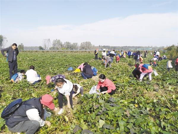 本报讯 10月25日,西华县东王营镇葡实庄园来了一群“小农夫”——来自周口中心城区的50多名小记者在周口报业小记者中心老师的组织下,拿起工具挖红薯,体验原生态农家乐趣。
