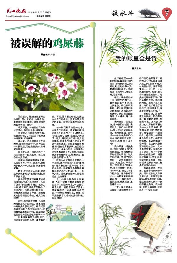 如果鸡屎藤早先遇到知己,也许会有另外的名字:清香藤之类。可是,藤有藤的命运,它无法左右自己的命运,更无法预知自己的命名,但它不会感叹生不逢时。