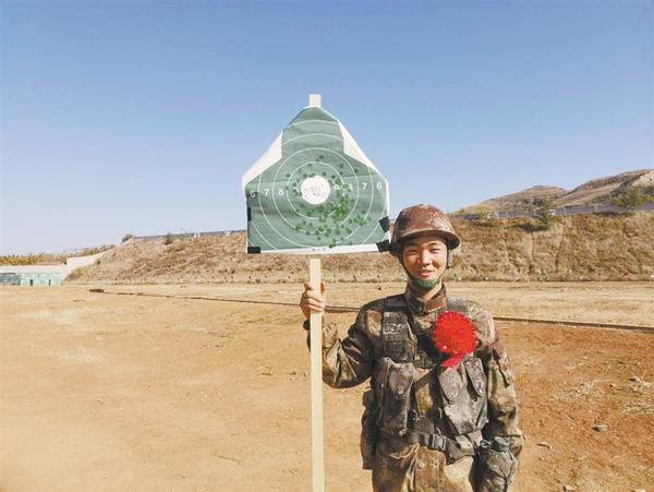 回味起第一次实弹射击,陈双玉激动地说:“我屏住呼吸,死死盯住靶子,扣动扳机,没想到打了个‘满堂彩’,真是太好了。在以后的训练中,我会更加努力,更加严格要求自己,争取以后都能取得好成绩。”