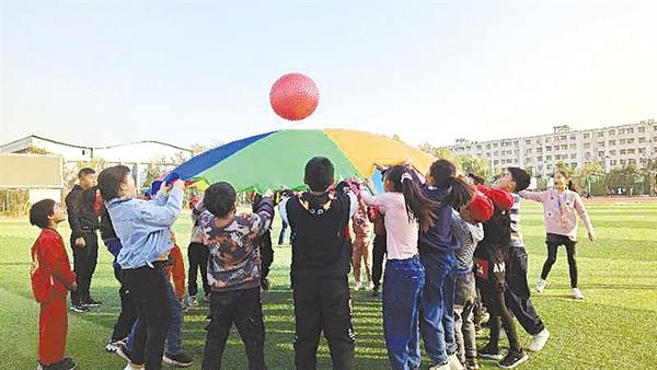 每项活动前,两支战队的队长都向队员们加油鼓劲,围在一起研究致胜对方的对策,在用彩虹伞的弹性向对方战队发球时,小记者屏住呼吸,静等彩虹伞弹性形成的震动频率达到恰到好处时,在口号一致喊出的一刹那,迅速把球抛向对方战队。