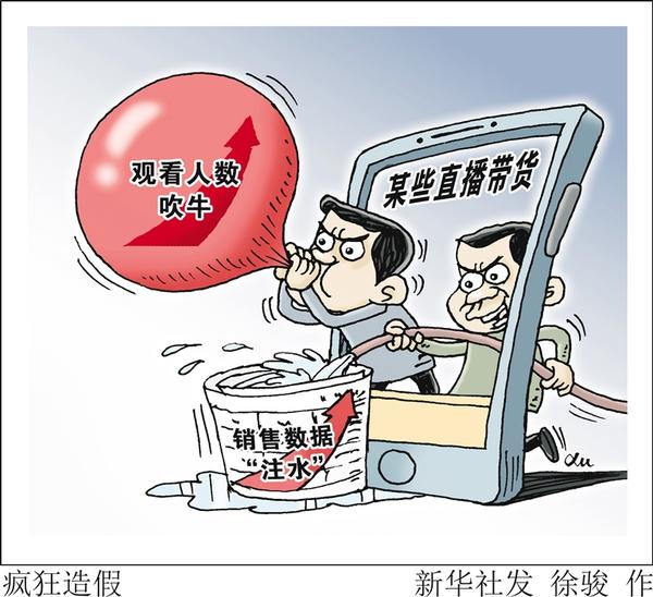 今年“双11”,直播带货的促销方式愈发流行。“新华视点”记者调查发现,直播带货如火如荼的背后,有些存在观看人数吹牛、销售数据“注水”问题,被蒙骗的商家不少最终赔钱,同时一些只认钱不看品质的“无底线”带货也直接坑害了不少消费者,为整个行业的发展敲响了警钟。新华社发 徐骏 作