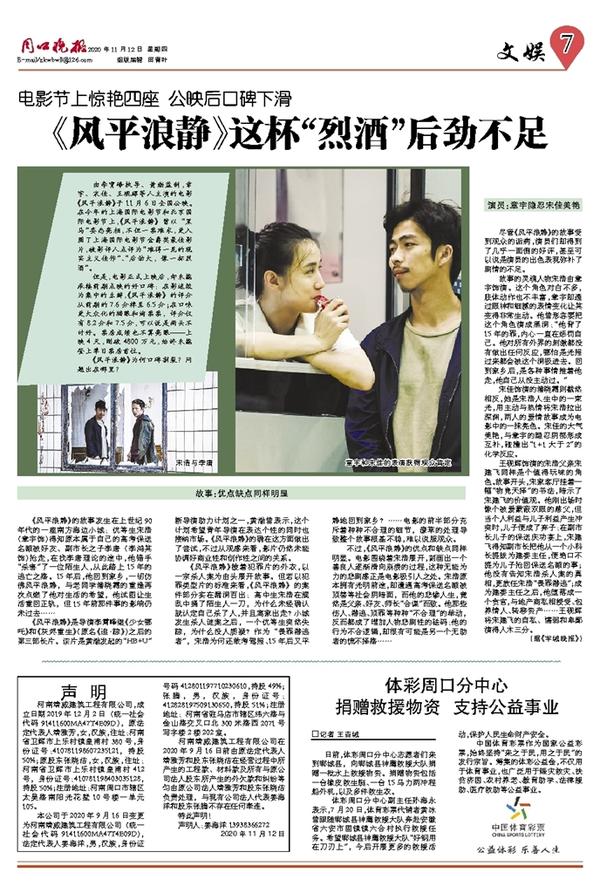 但是,电影正式上映后,却未能承接前期点映的好口碑:在影迷较为集中的豆瓣,《风平浪静》的评分从前期的7.6分掉至6.5分;在口味更大众化的猫眼和淘票票,评分仅有8.2分和7.5分,可以说是两头不讨好。票房成绩也不算亮眼——上映4天,刚破4800万元,始终未能登上单日票房首位。