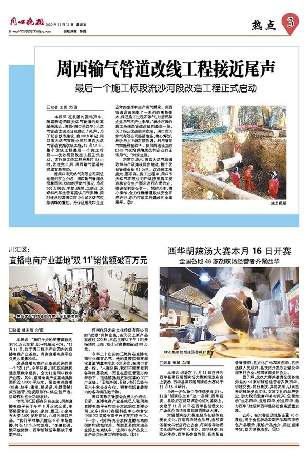 本报讯 “我们今天的销售额能达到50万元左右,比平时超出40%。”11月11日,位于周口数字产业园内的直播电商产业基地,周商直播电商平台负责人李建松说。