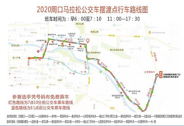 此外, 记者还从大赛组委会获悉,2020周口马拉松比赛公交车摆渡点行车路线图也已公布,参赛选手凭号码布可以免费乘车。去时乘车路线:文明路口—工农路口—大庆路停车点—庆丰路—景园停车点—奥兰停车点—安居小区A区停车点—建业北门停车点—碧桂园停车点—堤顶北路—武盛大道—引黄调蓄风景区门口摆渡车乘车点;回来时路线为:引黄调蓄风景区—武盛大道—堤顶北路—碧桂园停车点—周口大道—庆丰路—建业北门停车点—安居小区A区停车点—奥兰天和停车点—景园停车点—大庆路停车点—七一路。其中,公交车运行时间为6:00至7:10,11:00至17:30。因受场地限制,活动当天的停车区域分为两处,一是引黄调蓄风景区西门南北两侧便道;二是风景区西门向南路西600米处东西无名路。②9