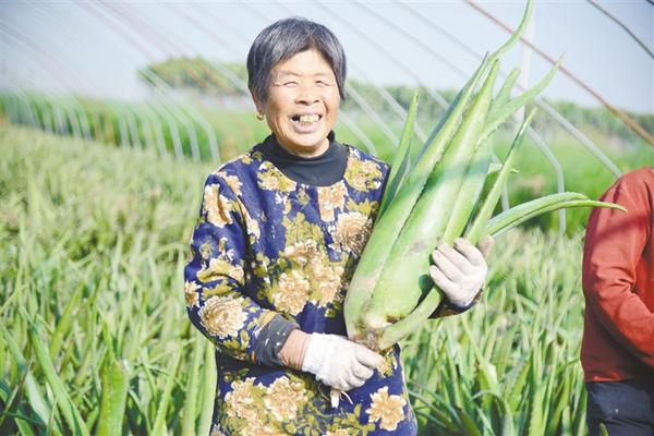 周口市川汇区巡察村居暨综合整治工作组在解决城北街道办事处邵火庙村历史遗留问题基础上,引导村民整理集体滩涂地198亩,发展种养产业、特色经济物种植及电商直播带货,“舞”活了该村农牧产业龙头,释放了乡村振兴的潜力。图为种植大棚芦荟让村民喜笑颜开。记者 孙安平 通讯员 朱艳 摄
