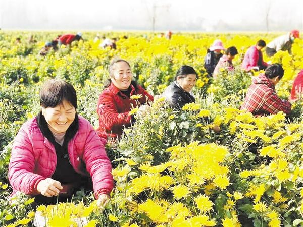 近日,西华县红花集镇龙池头村120亩菊花陆续进入采摘期。鲜艳的菊花不仅扮靓了乡村田野,更是绽放出美丽经济,品质较好的烘干后做成菊花茶,形态较差的做成罐头或者医疗保健药材出售,带动了当地群众增收致富。