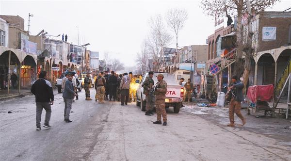 11月24日,安全人员在阿富汗巴米扬省首府巴米扬市的爆炸现场警戒。巴米扬市24日下午发生连环爆炸,造成至少17人死亡,超过50人受伤。新华社发